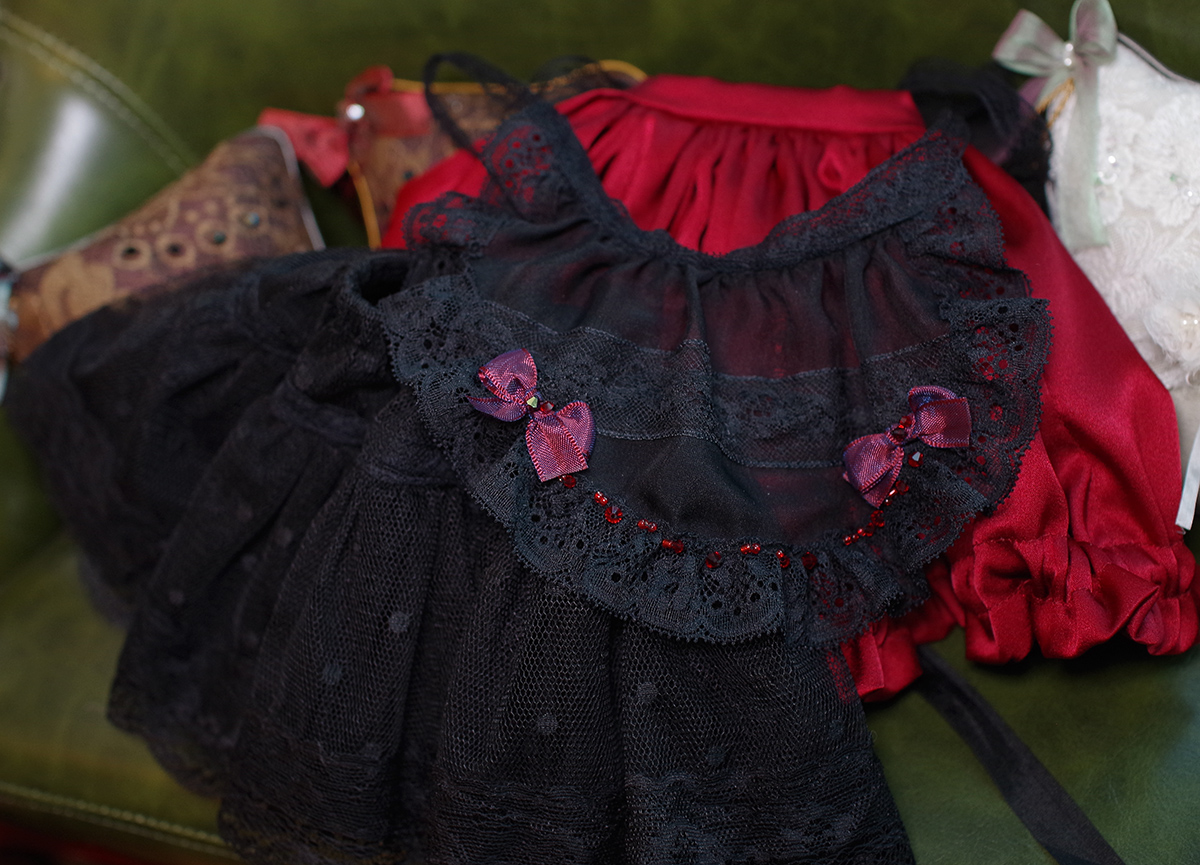 패티코트와 바지를 제외하고 모두 프랑스제 레이스를 사용하고 있습니다