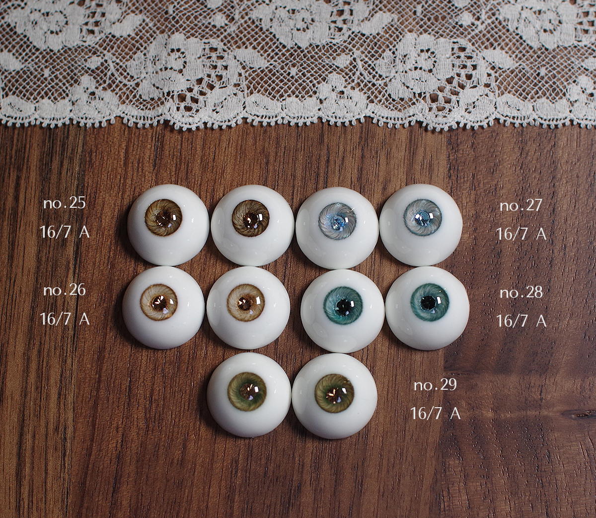 Sold out eyes : no.2, no.3, no.5, no.8, no.9, no.10, no.11, no.14 , no.16, no.19, no.20, no.22, no.23, no.25, no.26, no.27, no.28, no.30 no.31, no.32, no.33, no.34