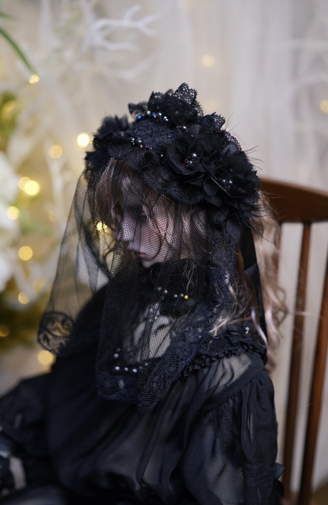 黒色のベールの一部レースが変更されます。 ベールの先についたレースが似たようなスタイルに変更されます。