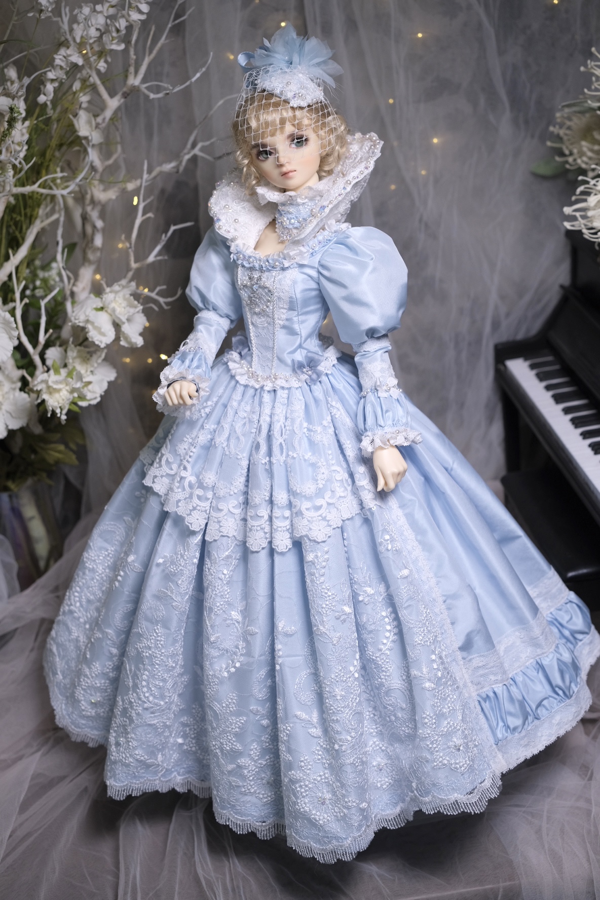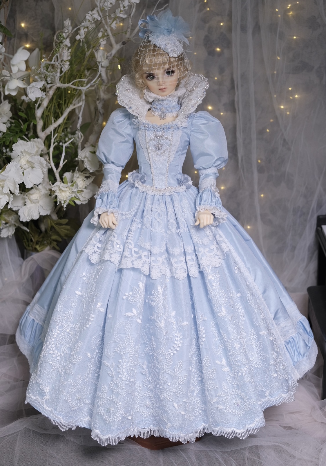 Taffeta silk dress + Panier + Choker + Headpiece + Ruff collar