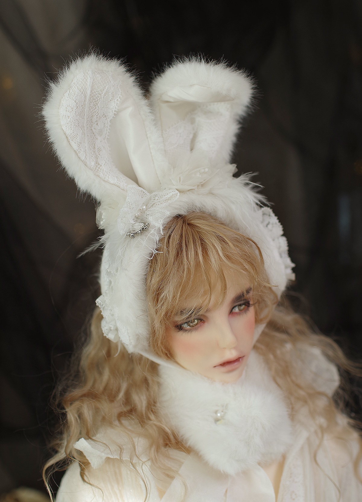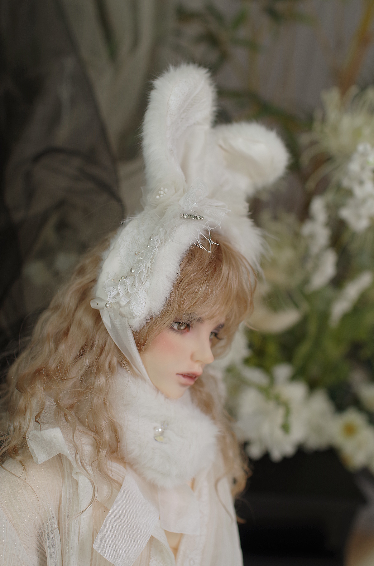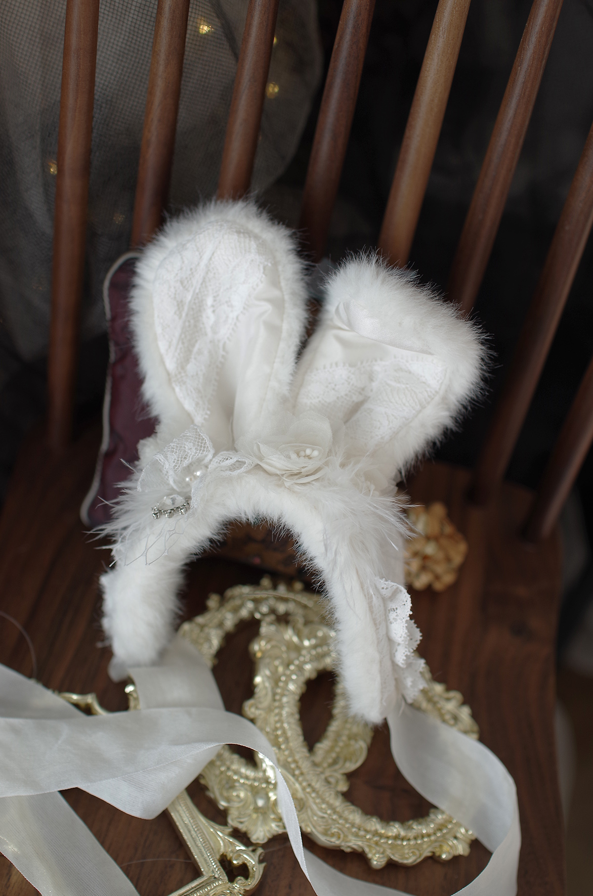 토끼귀와 머리띠에 와이어가 들어가 있어 취향대로 구부릴수 있도록 제작하였습니다